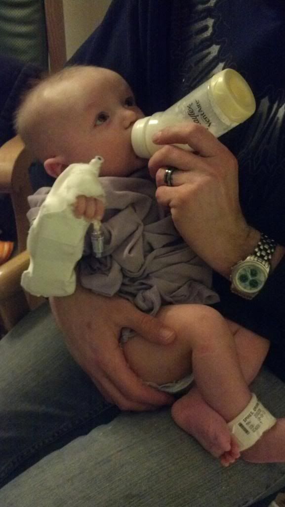 Here he is finally eating. This was at, like, 4:30 and he hadn’t had anything since about six o’clock this morning. Whenever the baby cries, my three year old gets super concerned and calls him a “poor little honey.” Little guy was definitely a poor little honey today.