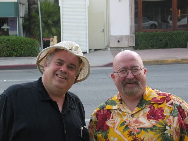 Qadgop the Mercotan and Silenus in Palm Springs, where I discovered that his xmex-like snout is retractable. Prehensile, too! You ought to see what he does to a chili relleno… <shudder>.