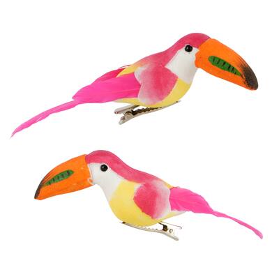For summer I found some parrots that look like they are wearing hawaiian shirts. These should be fun. I also got palm branches and monstera leaves to add to the huge hydrangeas for the floral displays. We will clip the new parrots and toucans to various bits of decor. The cardinals and spring birds will join in.