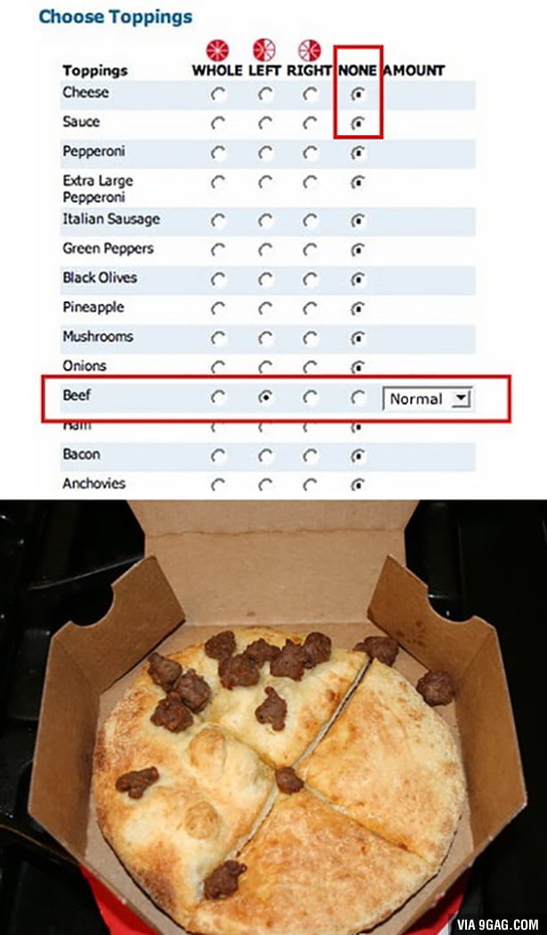 Hey. That sad lump of “food” was made precisely as ordered. Not the kitchen’s fault the order was placed by what appears to be a drunken toddler.