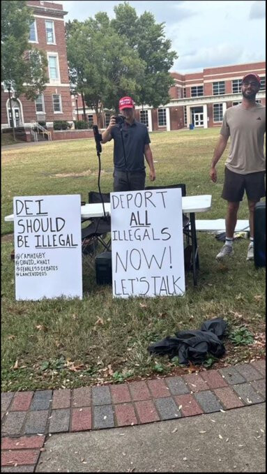 Two MAGA guys showed up at Tennessee State University (a historically black college) and set up a table with signs to “debate” DEI and immigration. Events turned out exactly as they hoped. Well, maybe not exactly. I’m sure they were hoping to provoke actual violence. What fucking assholes.