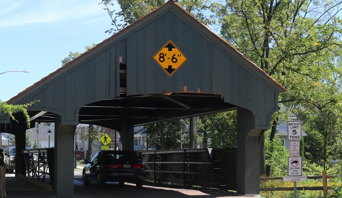 Over the years the city kept adding to the warnings until finally they had installed an overheight sensor a ways up the block before the bridge. When the sensor is triggered the traffic light at the bridge immediately goes yellow, then red while an electric sign starts flashing, OVERHEIGHT / MUST TURN .