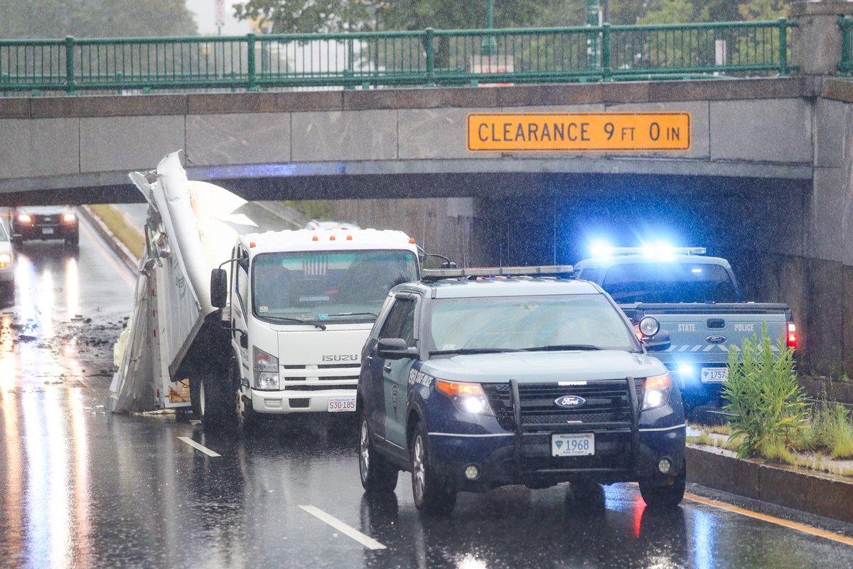 The Mass Ave bridge over Memorial Drive in Cambridge (at the MIT end of the Harvard Bridge) has been a rick source of truck damage since they put it up in 1931. Even though there are copious flashing lights and very visible warnings, people remain blissfully unaware of the heights of their vehicles. Especially people driving U-Haul vans. The bridge is 9 feet high. They even have a name for it – “Storrowing”, taken from Storrow Drive on the other side of the Charles River, where they get this kind of thing, too