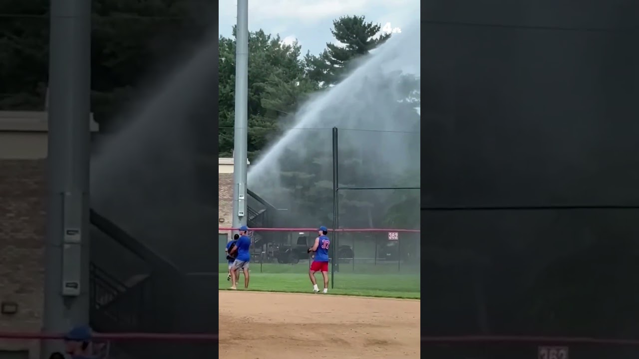 Home run hit by a high school player during batting practice hits a firefighter’s car which was parked next to a nearby fire station. He retaliates by flooding center field, which causes the game to be cancelled.