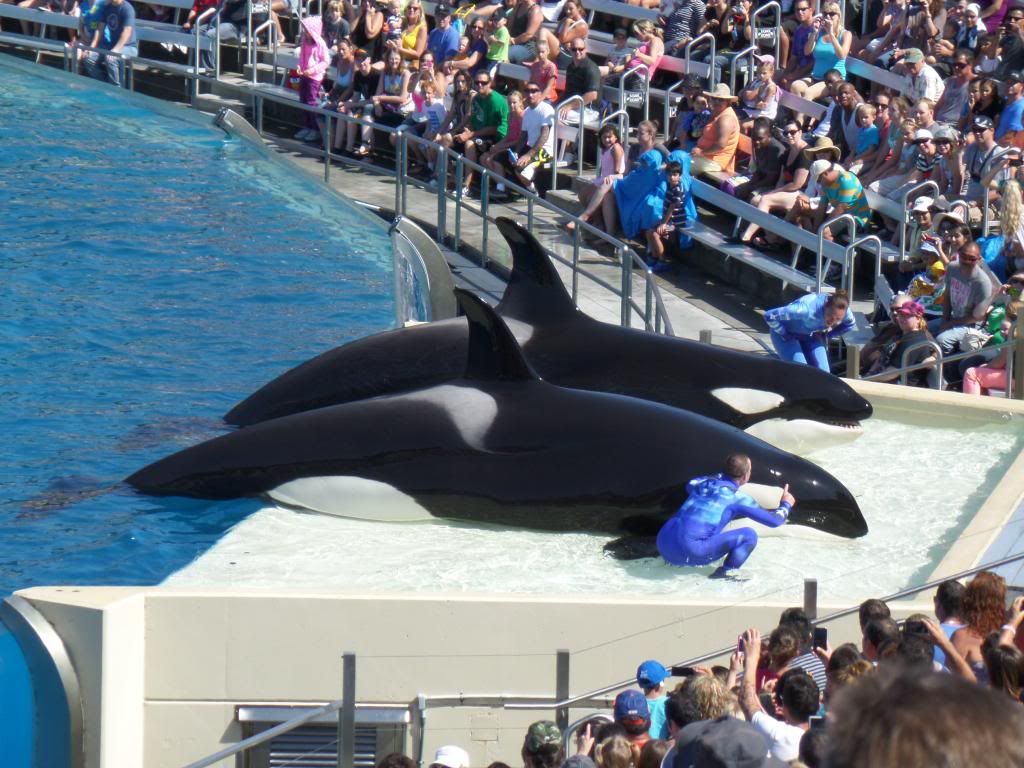 Day Four - I have to take back my accusations of hypocrisy - there were recycle bins all over Seaworld today. Seaworld was fascinating, but probably not worth the big bucks it cost - we didn’t go on any of the rides since that isn’t our jam, but we did see some of the shows and lots of the exhibits. The shows were a mixed bag - we loved the Shamu show, but the Las Vegas lounge act additions to just watching magnificent whales being magnificent felt demeaning to the whales and unnecessary. The dolphins were amazing - I could watch them for hours. The turtles and sharks and the rest of the fish were also wonderful - we also got to pet the manta rays. They felt weird - like wet velvet. I’m glad we went there, but I don’t think we’ll be going back - it’s a once in a lifetime event for us, I think.
