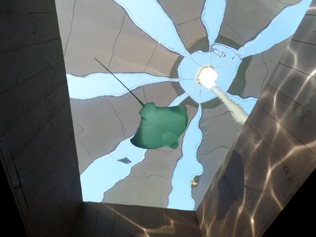 At Seaworld, underneath the manta tank. It was amazing, watching the mantas swim over top of us - I think they need reclining viewing beds, though. ![]()