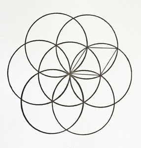 Draw a circle. Keeping the same radius, stick the needle on the circle and draw another circle. Still keeping the same radius, stick the needle on the points where the new circle intersects the original one and draw two more circles. The two new circles intersect the original circle at the first “needle point” and at points distant 120º from it.