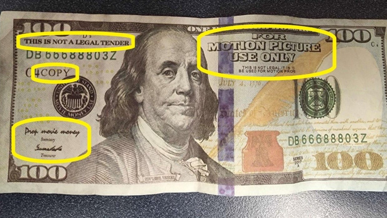 The truth of the matter, though, is that most of the counterfeits we see aren’t highly sophisticated superbills. They’re either printed on shoddy paper which noticeably doesn’t feel right, or, more recently, they’re just motion picture prop bills designed to look good from a distance but are obviously not real if you look at them for even a second, like so;