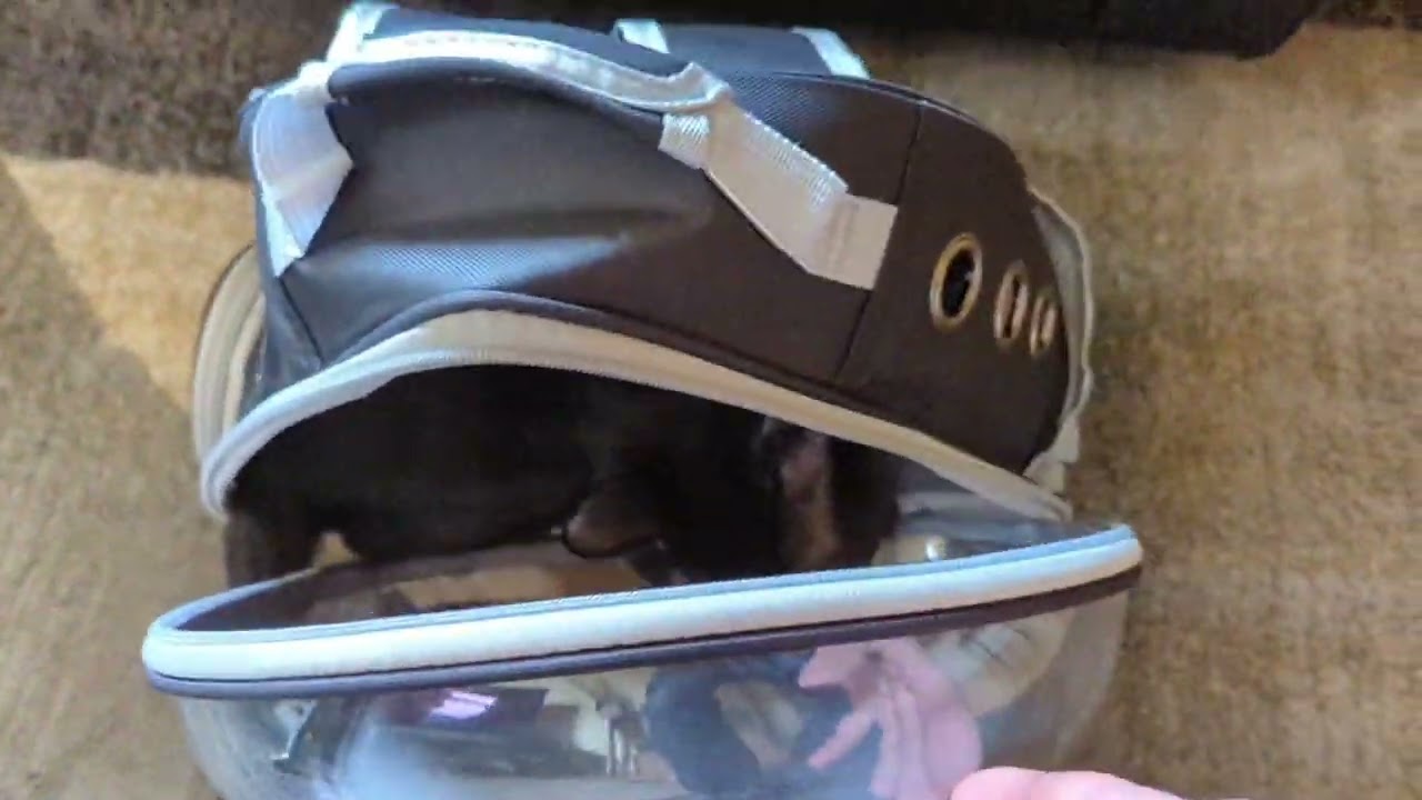 It turns out that instead of a cat, I accidentally got a cat-shaped dog. I got a bubble carrier for Cygnus and he loves going on walks. And by that I mean I carry him around so he can survey his domain. He jumps right into the carrier when I call him over.