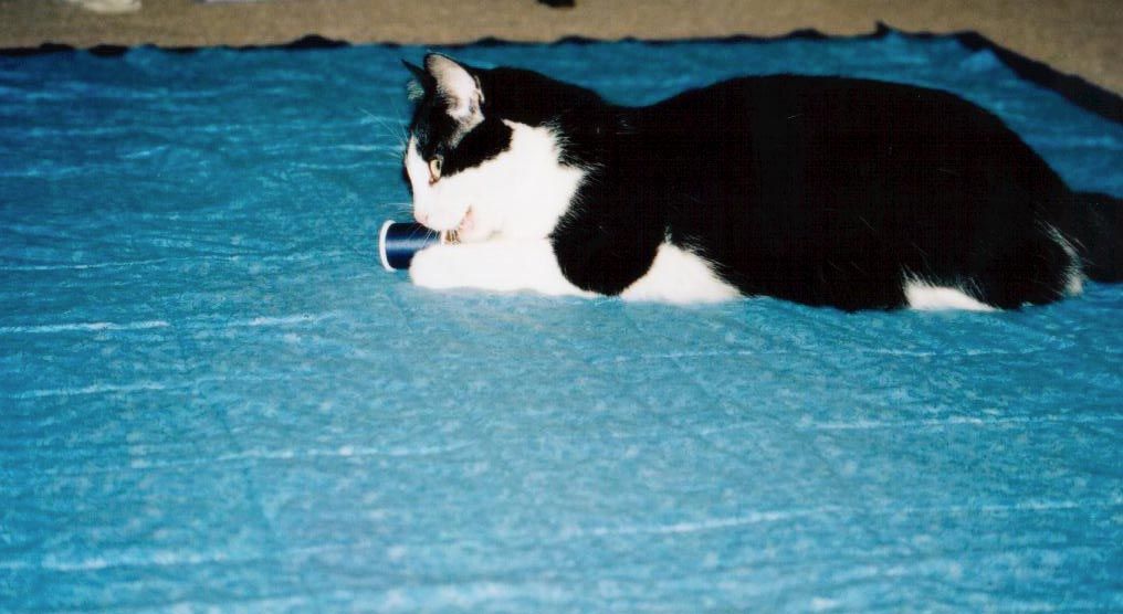 I don’t think he has any plans for world conquest, though. This is a cat who likes to sleep on the ping-pong table in the middle of a game.