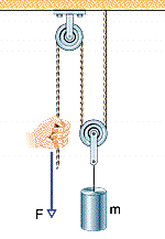 Two pretty simple questions that I just can’t find help for on the net or . First, in this two pulley system: http://www.webassign.net/hrw/07_32.gif
