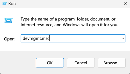 Push Windows+R on your keyboard. That should bring up the Run prompt. Type devmgmt.msc: