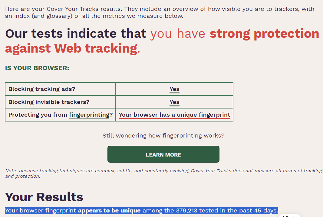 you don’t have to … I just did the “fingerprint test” on my computer and it is UNIQUE in this universe of nearly 400.000 tested computers (and still in their database) … this is of course true with all the different browsers and “private” modes… I ran the test var. times.
