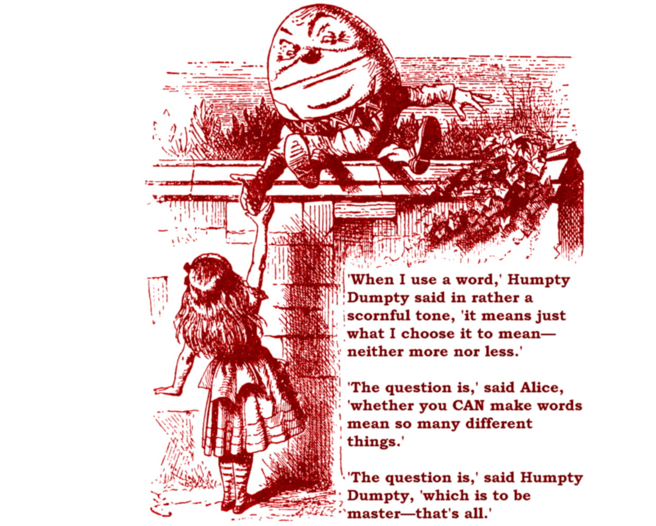 Given my frustration with a number of language usage threads lately, I’m hesitant to express much of any definitive opinion even on definitions. I’m welcoming the ascendancy of Humpty Dumpty! ![]()