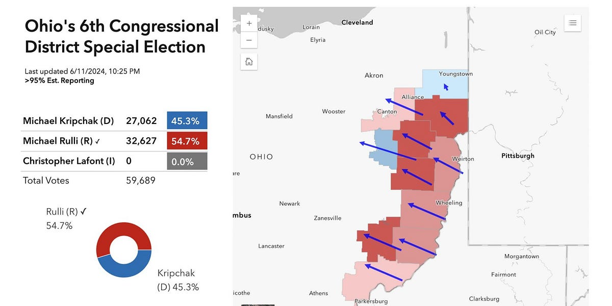 According to the video, Dems MASSIVELY overperformed (like +20) in this ruby red district. Significant Dem overperformance seems to be a persistent pattern in almost all special elections around the country since 2022. Could this be Roe reverberations?