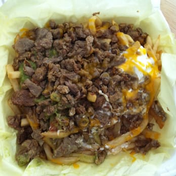Not the same thing of course, but closely related and discussed previously on this board - Disco Fries. I imagine if you cannot get fresh cheese curds it’d be better to attempt this (or another) variation.