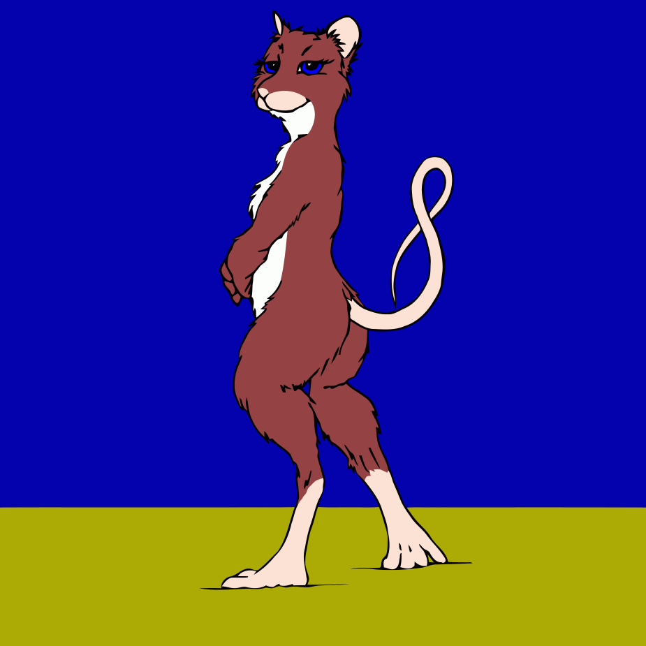 A fellow named William Fortier drew it in 1992 - the original image-file is at http://www.datapacrat.com/Furry/CD%20-%20Fur/W%20FORTIER/RATLASS.PNG . I’m a data pack-rat, so when I re-noticed that image a few years ago, I un-dithered the colours and ran it through a vectorizer, so it would look a lot less pixellated. I probably set the background too dark, but other than that, I think it turned out reasonably improved, no?