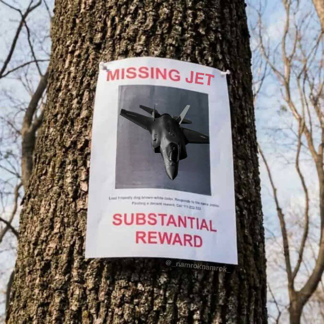 Missing: One jet. Answers to “Skippy.” Very friendly. Reward if found.