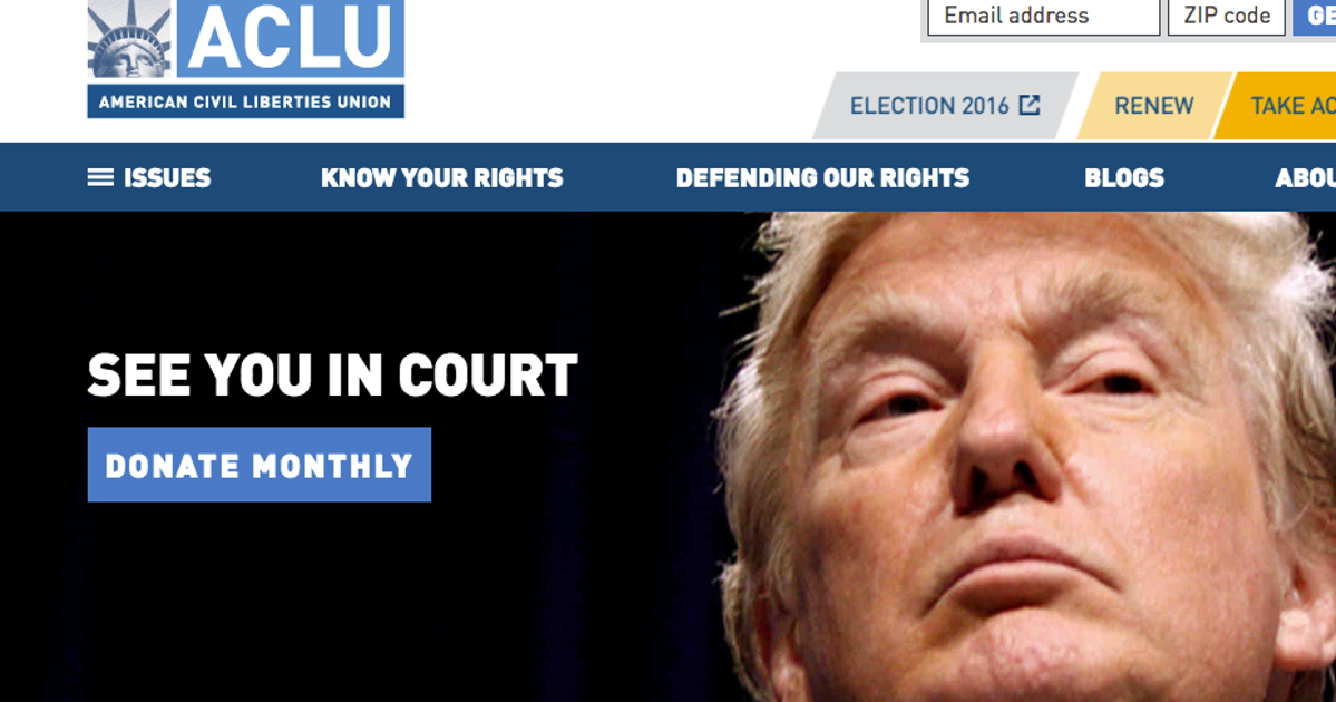 Kudos to the ACLU. What an important and worthy organization. They really are the only ones who actually give a shit about what our constitution says.