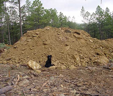 This pile is similar to what we had in mind. Ricochets might be a problem with the exposed rock. Perhaps one load of top soil (spread over the fill) would cover the rock and prevent Ricochets? We could throw some winter rye seed on it and keep it wee until the grass came out. Protect the dirt from erosion and it would look nice.