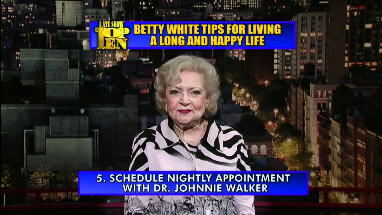 Betty White’s Top Ten Tips for living a long and happy life as presented on The Late Show with David Letterman.