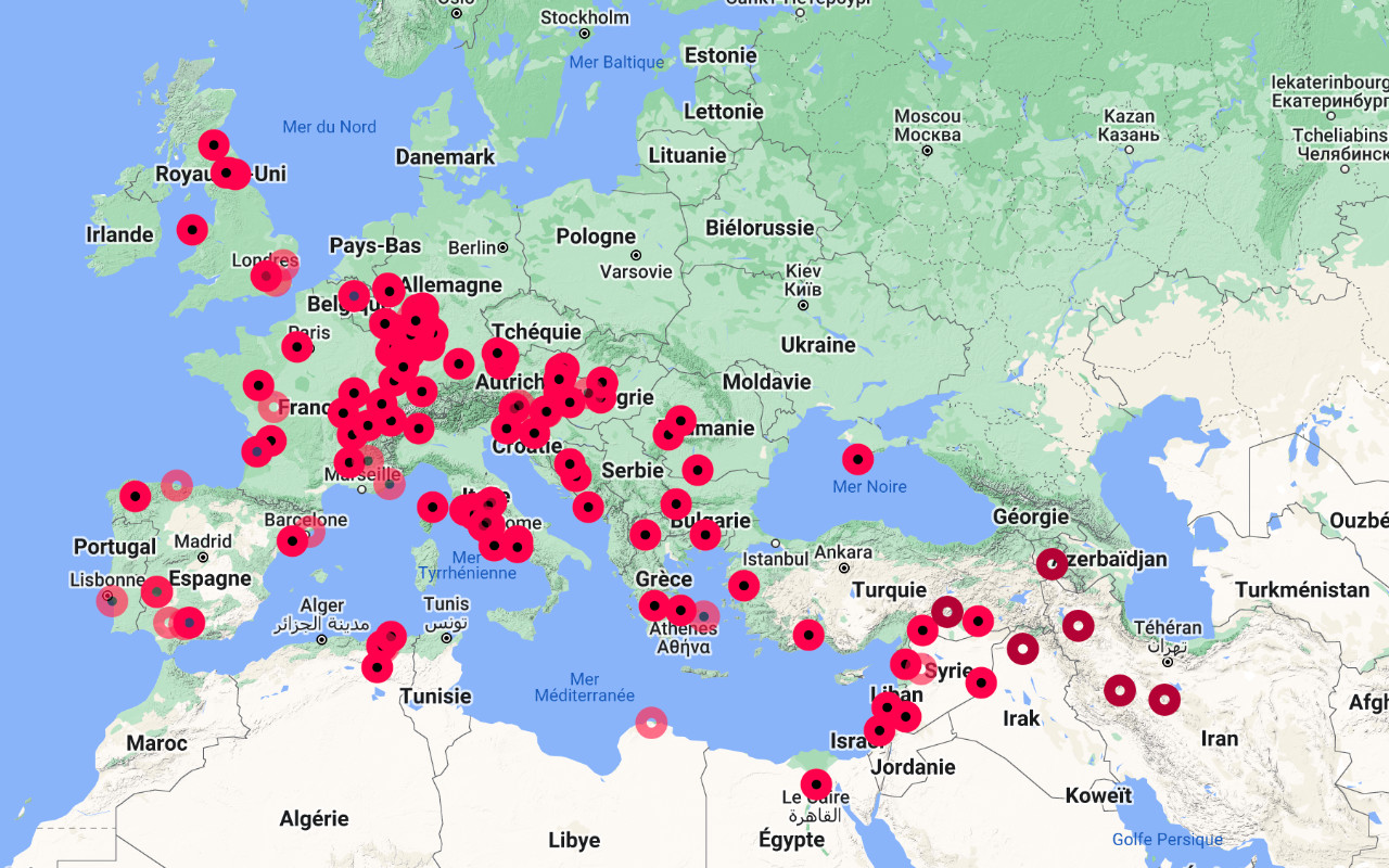 I’ve said it before, but it’s been a while, so I’ll bring it up again. The dodecahedra appear to correlate with Roman army posts. Another thing that correlates with Roman army posts are the locations of Mithraia, the “churches” of the cult of Mithra. If you compare maps showing the locations of find of dodecahedra and those of Mithraia, there’s a pretty good overlap – except that Mithraea appear to have been found in more places that Dodecahedra have (notably the Iberia Penisula and Turkey. Maybe the Dodecahedron-searchers haven’t been looking hard enough). Or it could be that the overlap simply indicates that both dodecahedra and Mithraism were both associated with the Roman Army, and don’t have any direct correlation at lall.