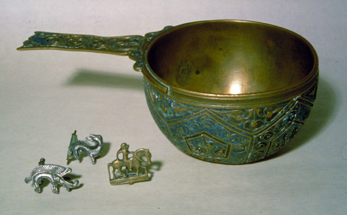 This publication from the Getty Museum has more information on the aryballos on pages 289 through 291. It also lists other Gallo Roman enamelled bronze artifacts with pentagonal panels, but I am not having any luck finding images other than the aryballos and the cup/bowl previously mentioned in this thread. The other artifacts are a “casserole” (also called a skillet on other sites?) excavated at Bad Pyrmont and two bowls excavated from the cemetery of La Plante which are in the Archaeological Museum at Namur, Belgium.
