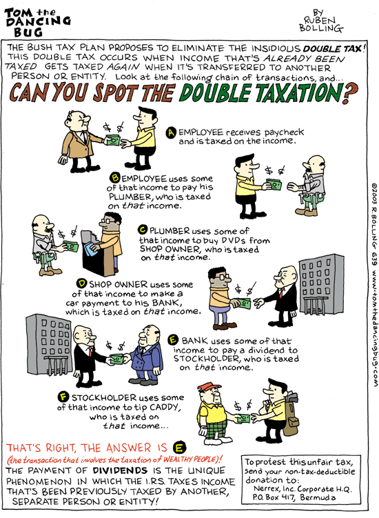 My point is that he has already paid taxes on those money he earns from capital gains, namely income tax. If you make an example where he starts with a million dollars, then this will not be clear, since you don’t consider the taxes he has already paid on those.
