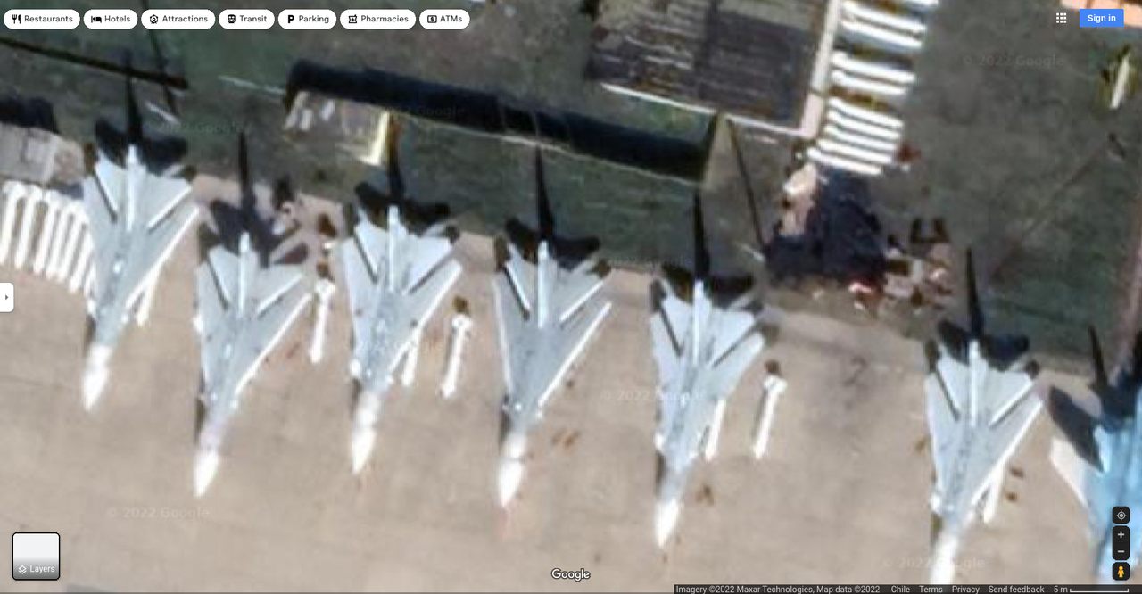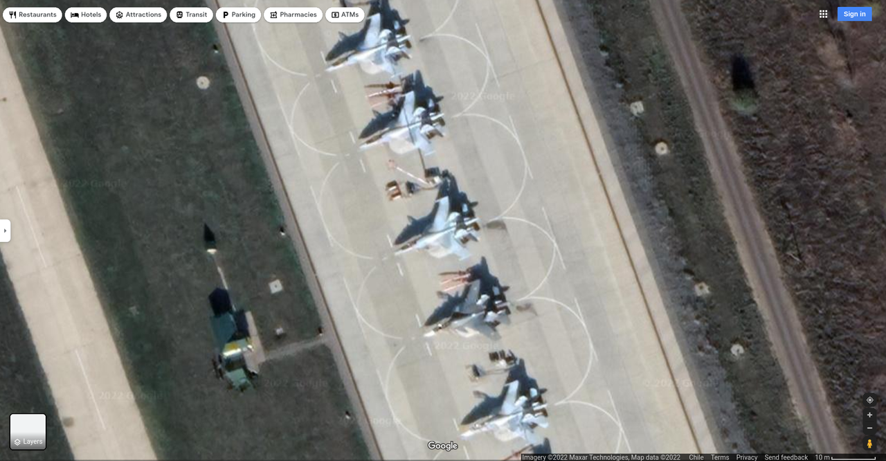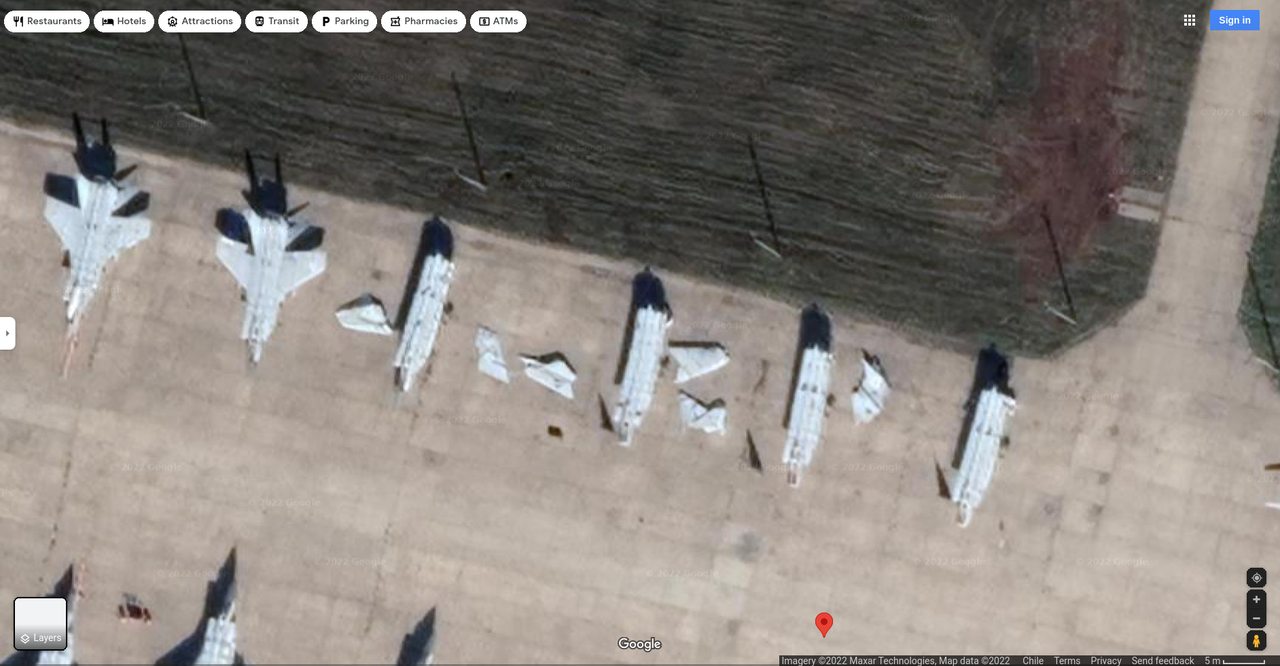 Fighters, A-10’s there, B-52s to the northeast. Aircraft with wings cut off and laid on the ground. That Russian airfield could be the same sort of boneyard.