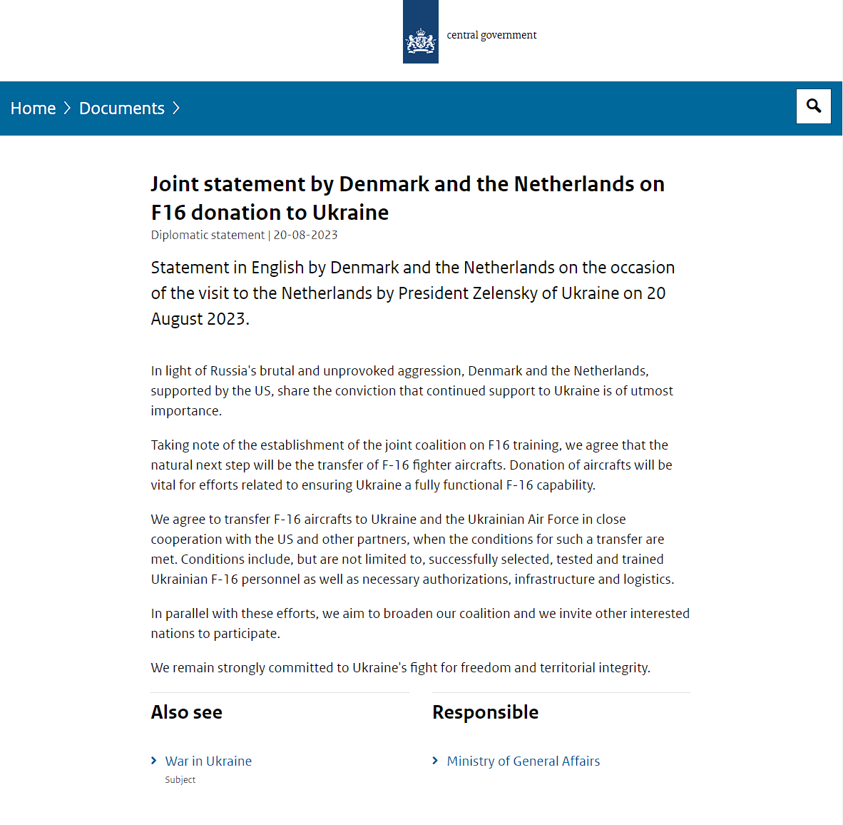 President Zelenskyj and his wife will be landing in a few minutes on Flyvestation Skrydstrup where the Danish F 16 fighters are based. Crown-princess Mary, the Prime minister , the foreign minister and the minister of defence is meeting him. I guess it means that we are committed to donating some F 16s to Ukraine.