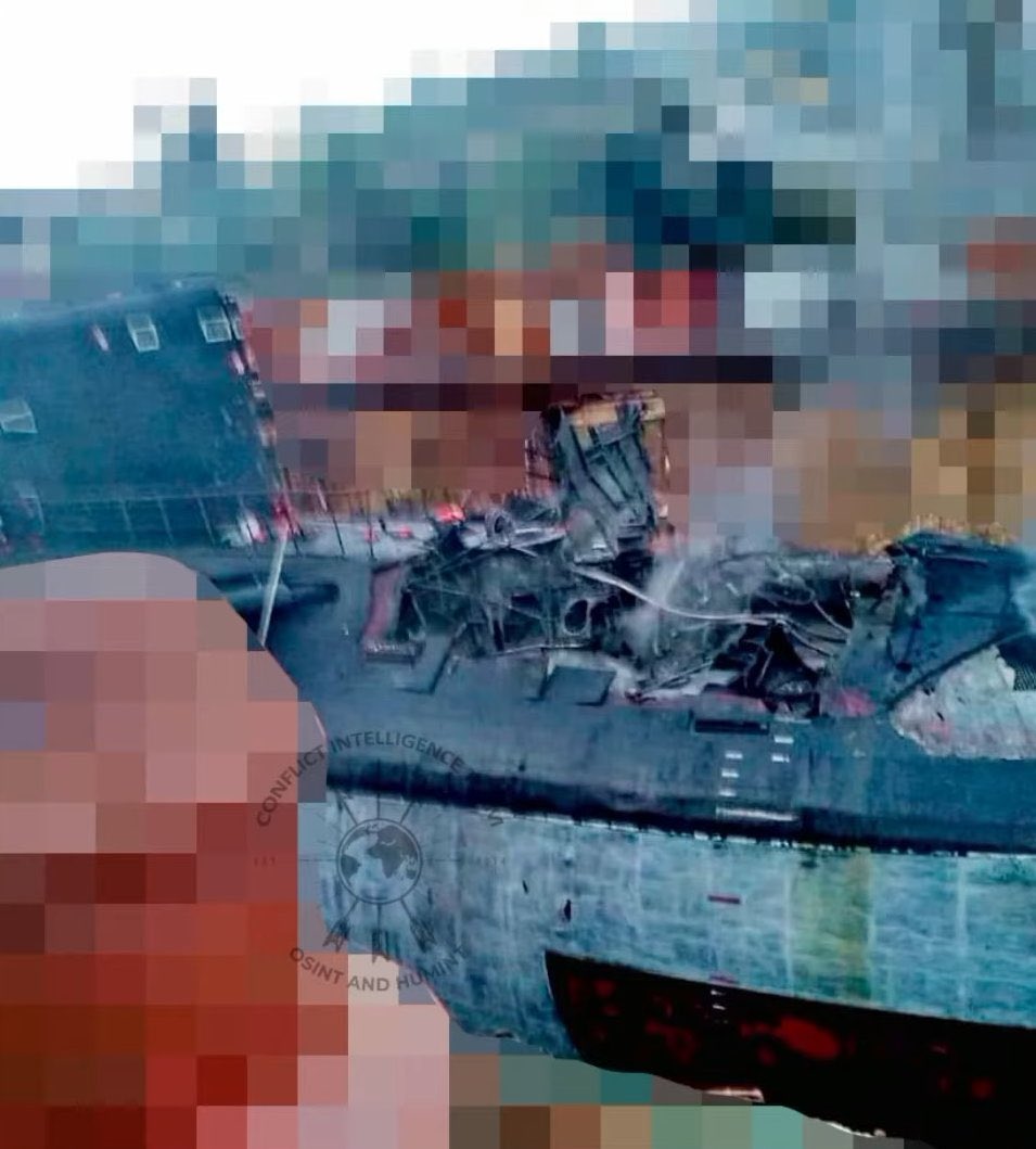 Photos of the damage done to the Russian submarine in last week’s attack on the Sevastopol dry dock: