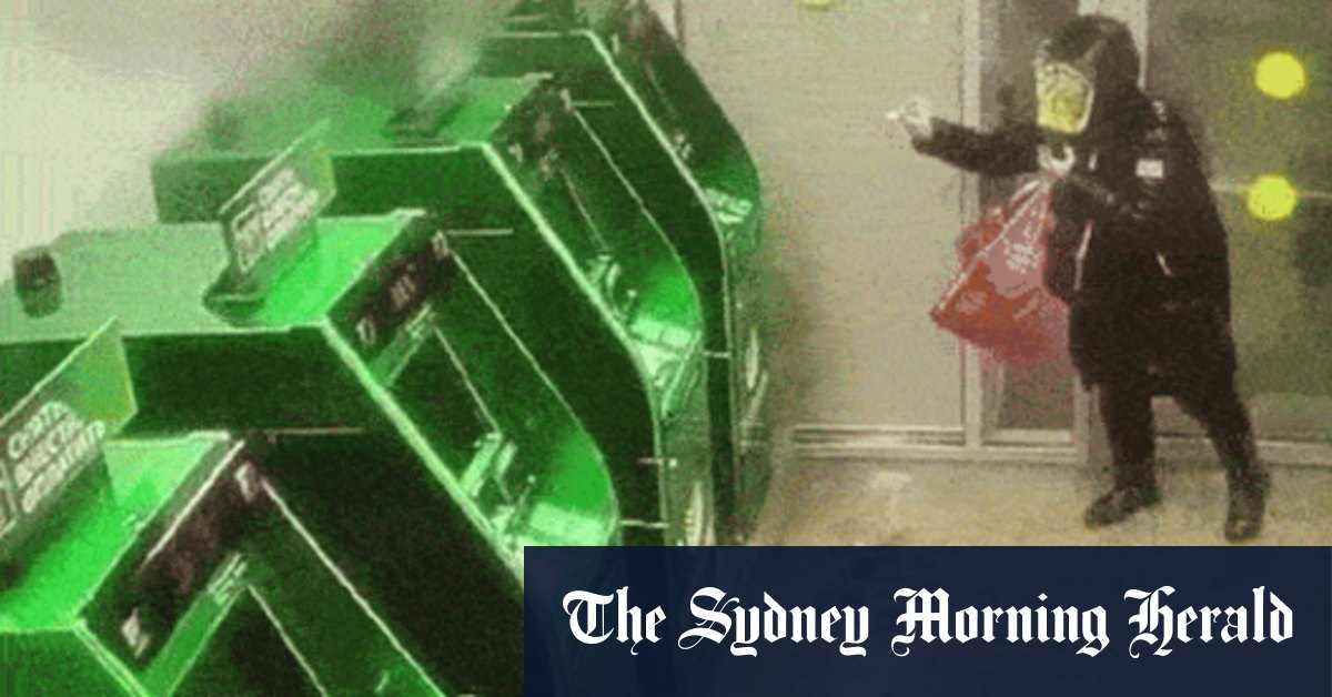 "A Russian pensioner takes a box of matches into a bank and douses a row of cash machines with flammable liquid.
