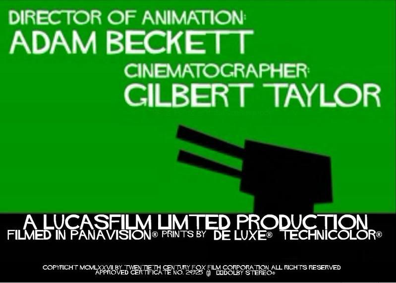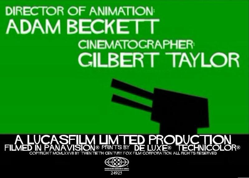 The other thing that struck me is that the black space at the bottom of one screen could have some legal bits under it, since that’s the way it was always done during the old days that the sequence was trying to mimic. Here’s an example as Saul Bass might have done it during the time he worked and what it might look like at the time Star Wars actually came out. (At the time, the company name was actually punctuated “Twentieth Century-Fox,” but I forgot to put the hyphen in.)