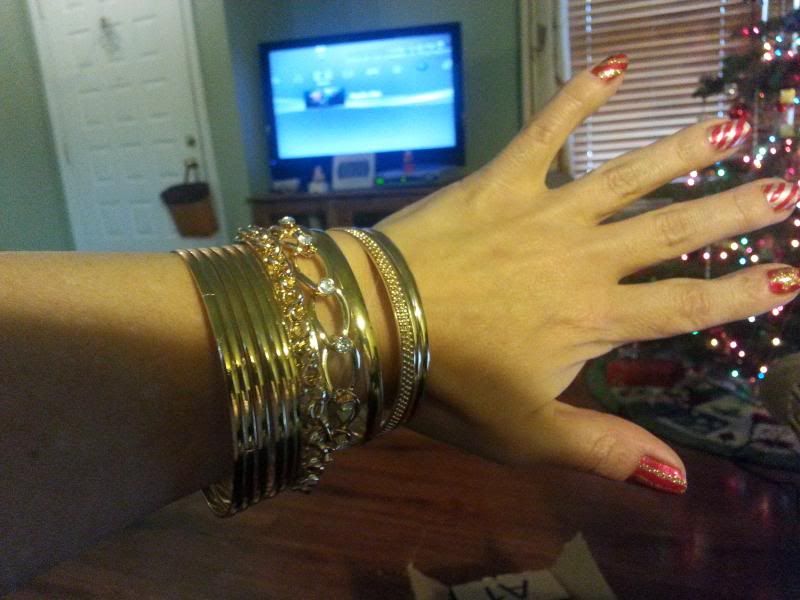 Opened my secret Santa gift this morning. I received a very pretty, very shiny set of bangle bracelets. Thank you, Anaamika! I love them!