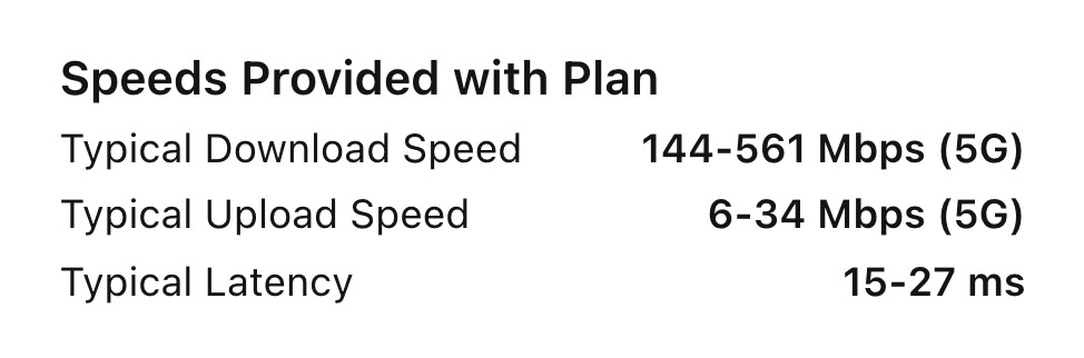 Real-world, I’ve gotten several hundred Mbps with Fi, but usually it’s around 20-30. Heavily dependent on location and congestion. It tends to be a lot faster in major cities than in rural areas.