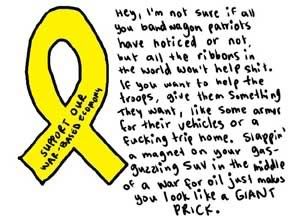 I always liked this ribbon/bumpersticker. Kinda wordy tho…