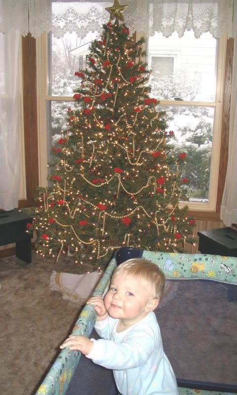 Yep. When my cats were younger, they would get on the couch and launch themselves into my Christmas tree. Every year, we would have to twist-tie branches to the branches above them so you wouldn’t see the huge gaps that the cats had made in the tree. My cats are older now so they aren’t interested in the tree anymore. Because of that we finally broke down and got a new tree (the one in the picture) in the after Christmas 2006 sales.