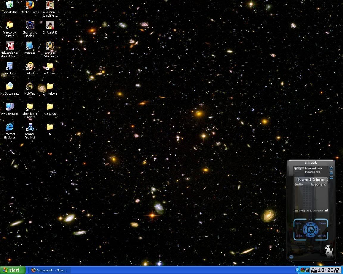 I have my background set to change every 30 minutes in Windows 7, from a folder full of amazing high-res backgrounds that I downloaded for free from wallbase.net.
