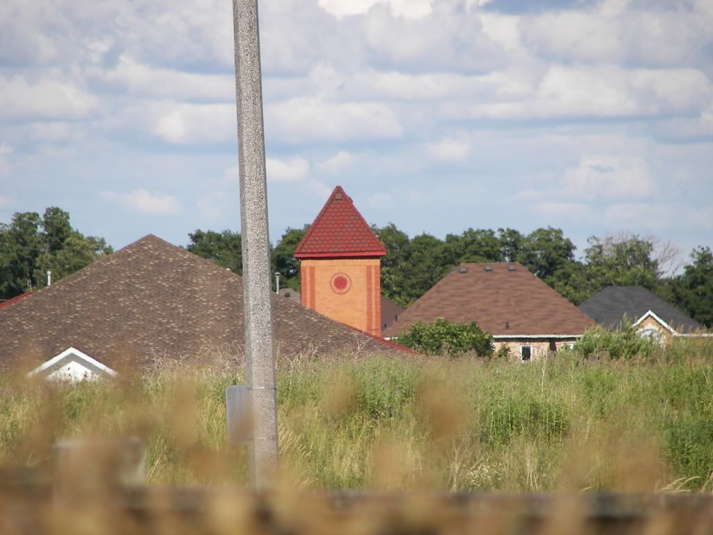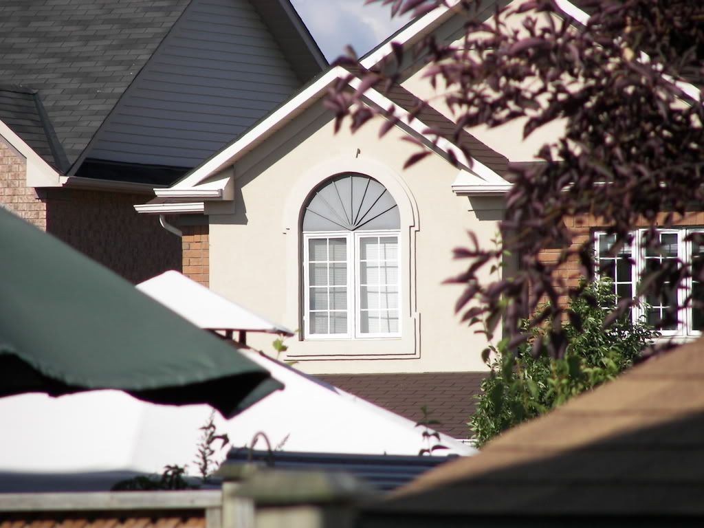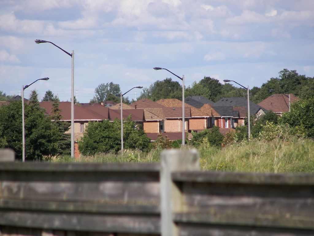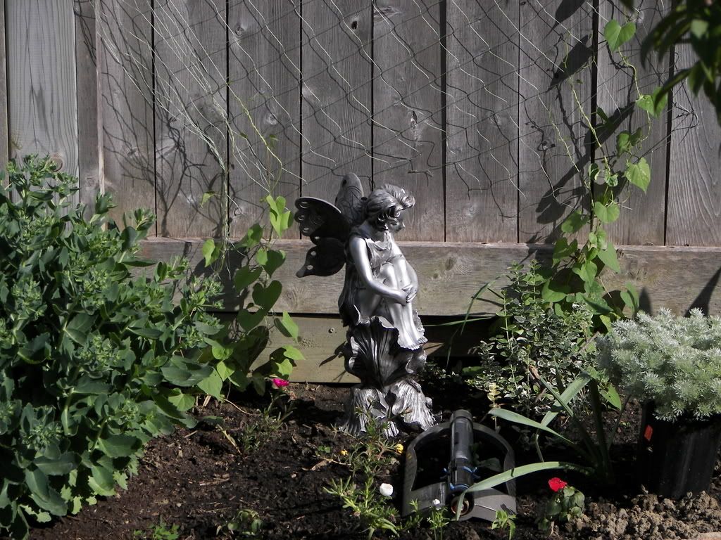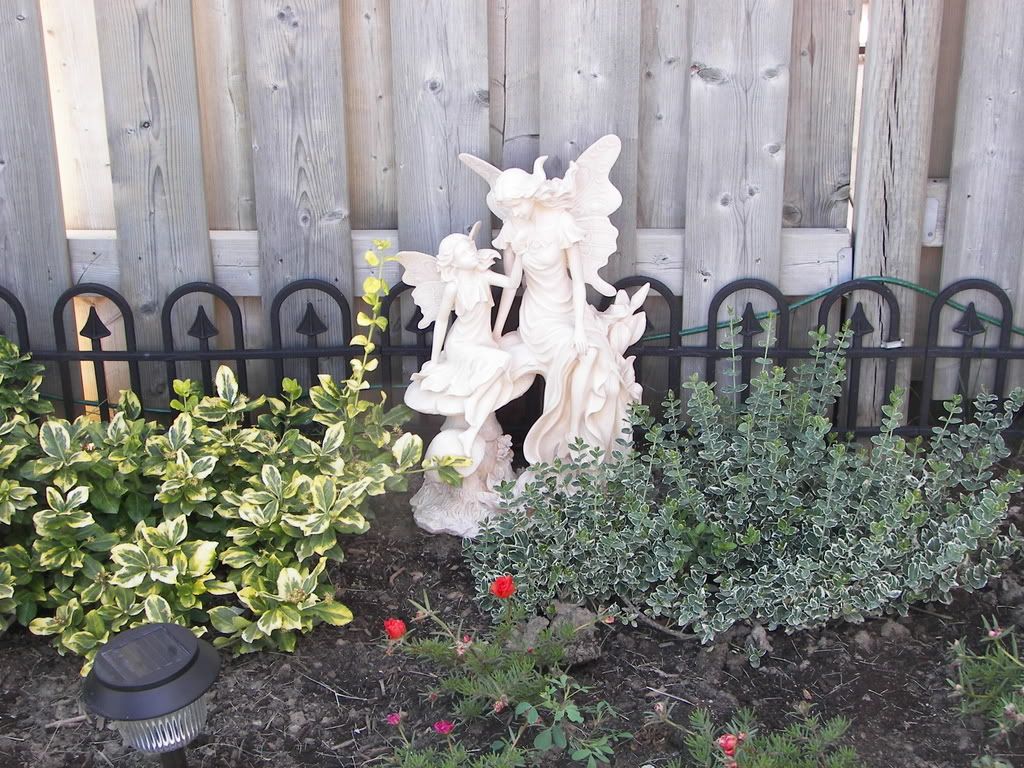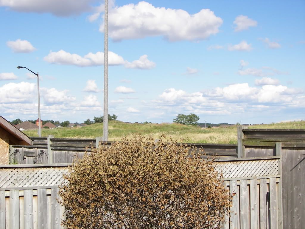 Yesterday we went to MindWife’s brother’s new place (left half of the semi) for some Canada Day celebrations. It was my first time seeing the place, and I have to admit it’s quite nice. It looks bigger inside than it does from the outside, and it’s well appointed; of course, he couldn’t resist showing off his new toys. Most of our time was spent in the back yard as we all set up for a barbecue. There were beerverages aplenty, various snacks (cheese & crackers, olives, watermelon, various potato chips, and some weird concoction he made that was essentially a kind of fritter cake consisting of eggs and spaghetti all fried up into bars. I didn’t much care for it.) The back yard is quite nice. It has a nice view (and I couldn’t resist taking a few zoom shots) and the fence is lined with a nice garden filled with garden angels and a cool little waterfall in the corner. Their newly-shorn Pomeranian Dakota was a big ol’ suck to anyone who had food. Our hostess, BIL’s wife did a great job on the spread, as did BIL himself. He made a pretty awesome ice cream cake made of chocolate cake layers, chocolate ice cream, and crushed bits of Skor bar, topped with cocolate cookie dust and caramel. I was impressed with his culinary skills; I didn’t even know he knew how to make anything that wasn’t fried. The barbecue itself was great; barbecued sausage and boneless ribs were the main courses, and there was corn on the cob (boiled) as well as my macaroni salad (which was a big hit).