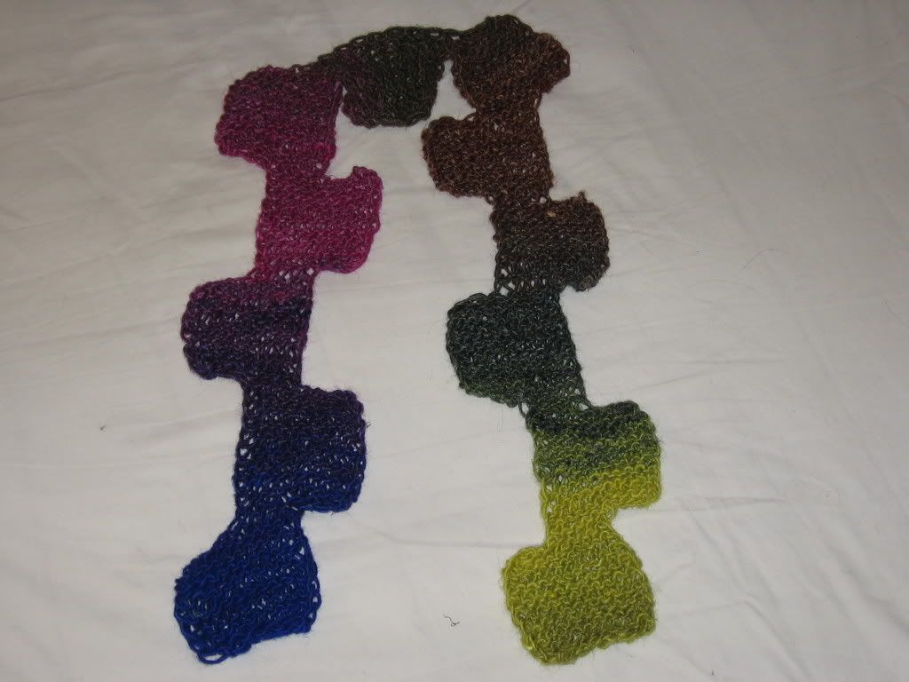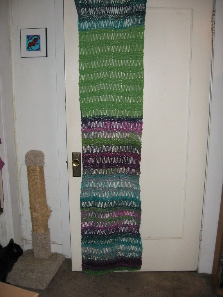 I finished two gift scarves for co-worker birthdays. The co-worker I gave the second scarf to loved it. She can’t wait to take it to Europe to show off to her knitting relatives. Since I’m leaving, I’m giving everyone their Winter Holiday presents early. I have two more scarves to make, these will be silk and cashmere, for the women who literally saved my life last summer. This is my present to me. That’s Keisha in the lower left hand corner.