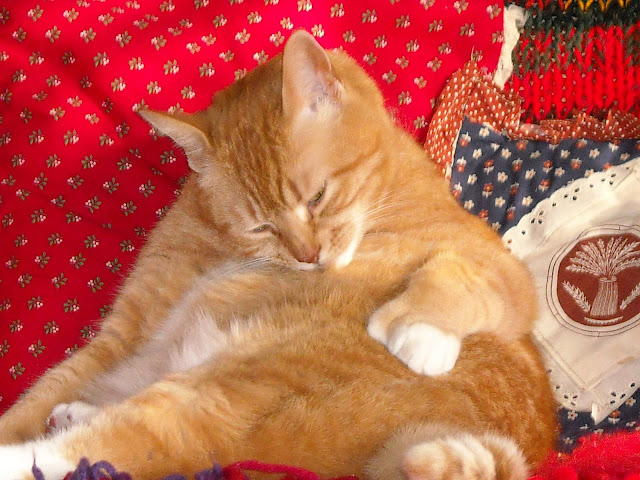 Rio-kitty with a silly look on his face. He likes to snuggle with Punky, and sleep in the bird-feeder.