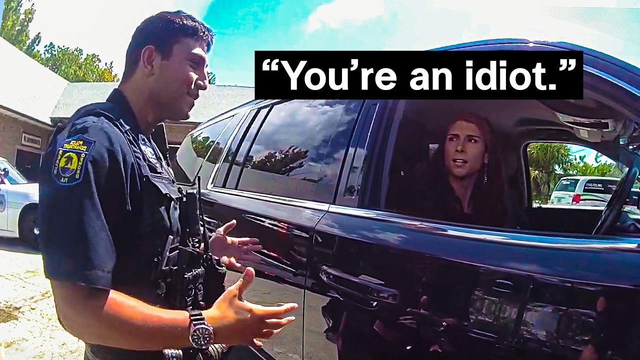 Note the woman’s phone positioned to record the traffic stop. Not an accident.