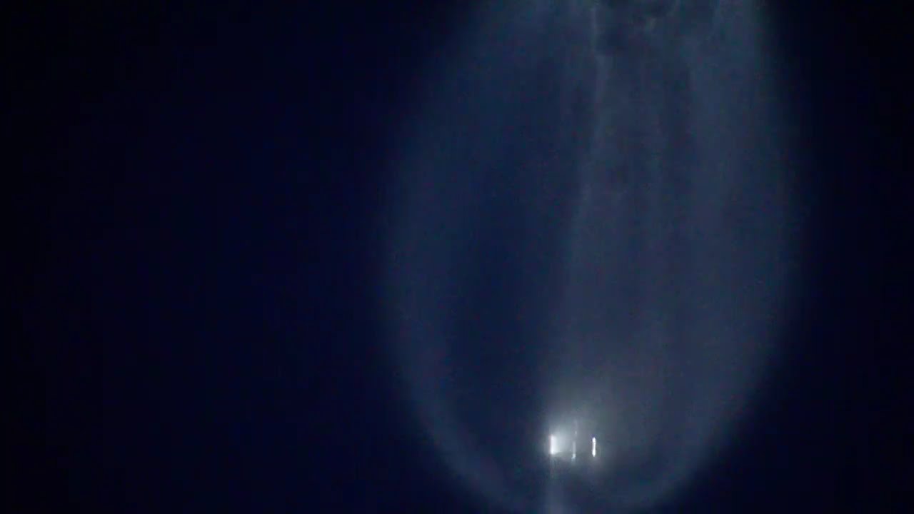 This footage isn’t great (YouTube removed their stabilization feature for some reason), but here’s a vid of the “jellyfish” and all four vehicles separated. The one producing the plume is the upper stage.