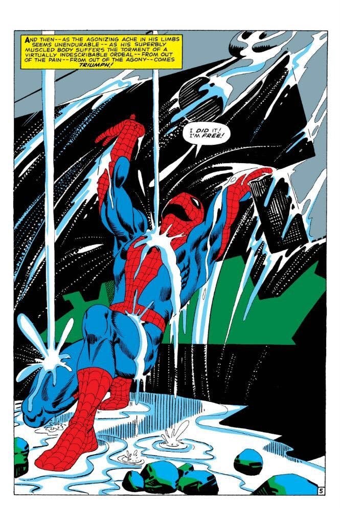That was also a reference to the early comics. I’ve read some of the Amazing Spiderman and I think in the comic version he had to get an antidote to Aunt May. Similar concept; being overwhelmed by panic and having to push through it. It was more about internal fortitude than physical strength.