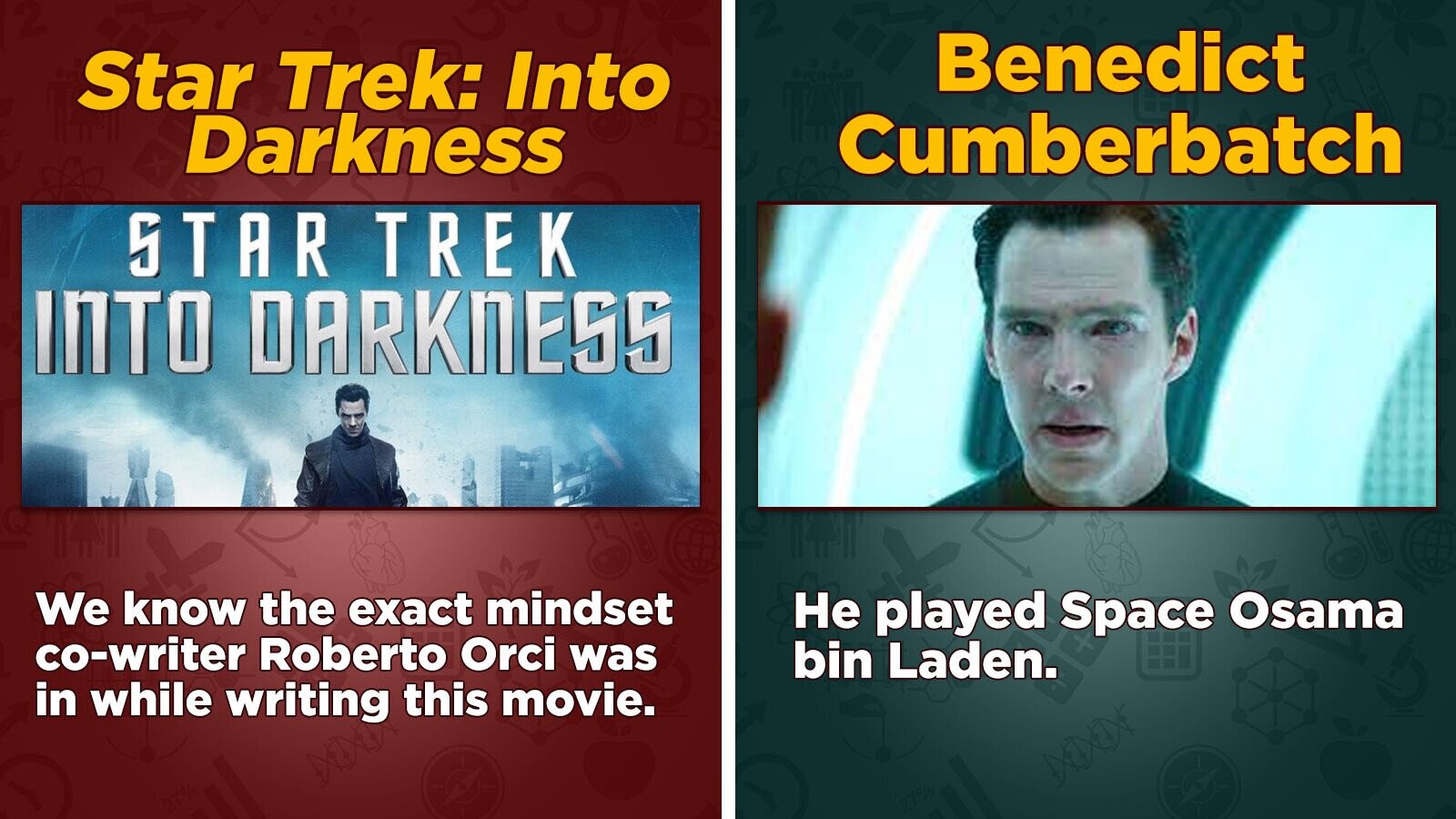 Sometimes, though, it’s the TOS episode with the two guys who are half black and half white on opposite sides of their body, or the guy who wrote Into Darkness trying to say that 9/11 was an inside job.