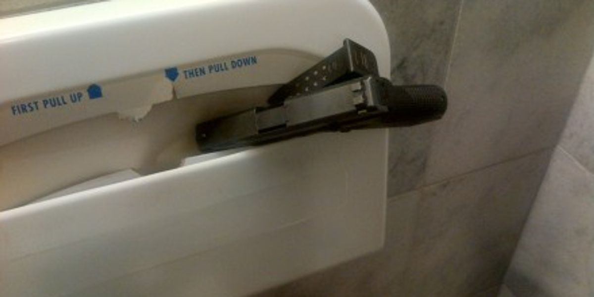 That said, gun training really ought to include a section on “what to do with your gun while you’re crapping” since this is a common problem.