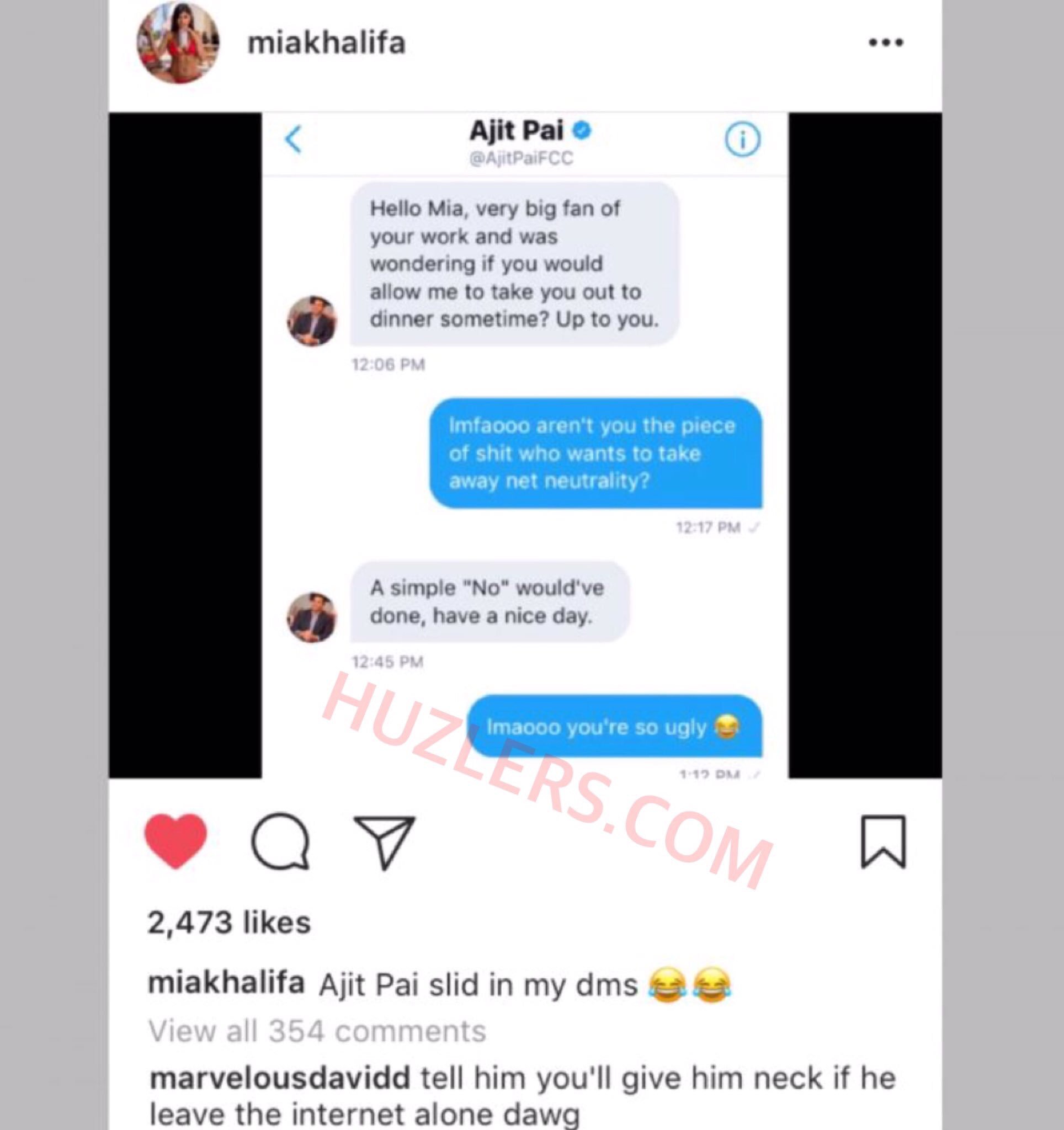 Ajit Pai attempts to flirt with pornstar Mia Khalifa on social media.