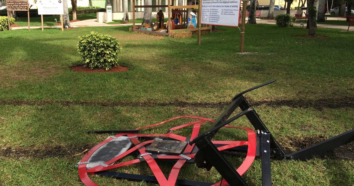 NO. Vandalism is vandalism. It’s an ugly and illegal commentary on someone’s ideas. Think about the flag. If you burn my flag it is an act of vandalism—it is an illegal act. But if you burn your own flag, you’re on solid legal ground. Let’s say I go buy a Satanic symbol. Am I free to mutilate it any way I want? Of course I am. But I am not allowed to damage your Satanic symbol. Just because a symbol might represent a group of ideas doesn’t mean I’m trying to quash anyone’s speech. It means I’ve chosen an illegal way to comment on it.