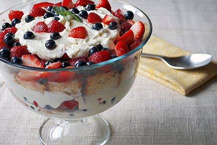Fresh strawberries, macerated with sugar, piled on top of pound cake and whipped cream. Cream and wild black raspberry pie. Rhubarb crunch. Tiramisu with macerated plums and apricots instead of coffee and liqueur.