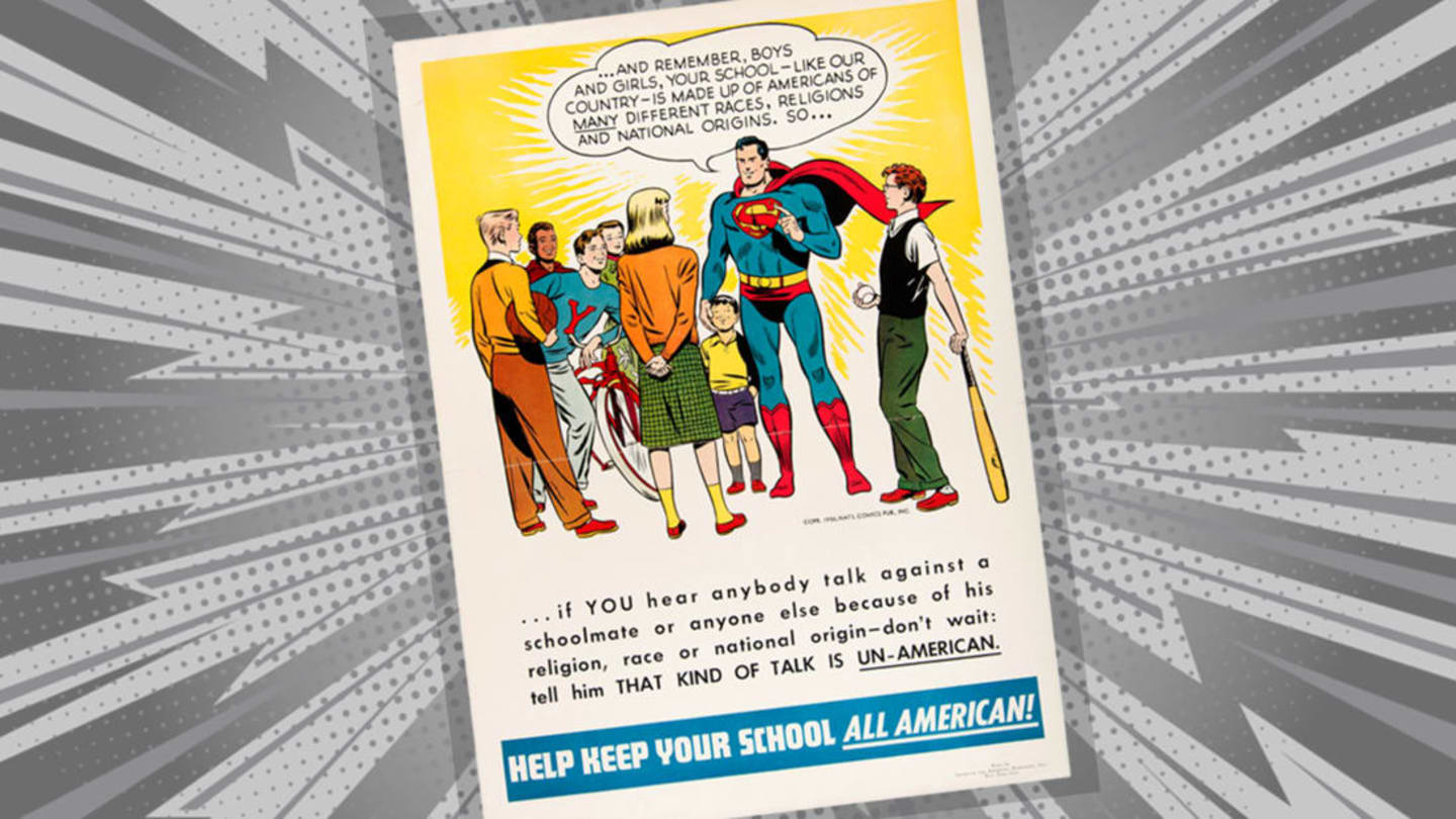 They were doing Superman teaches about intolerance comics way back, 1949 to be precise.